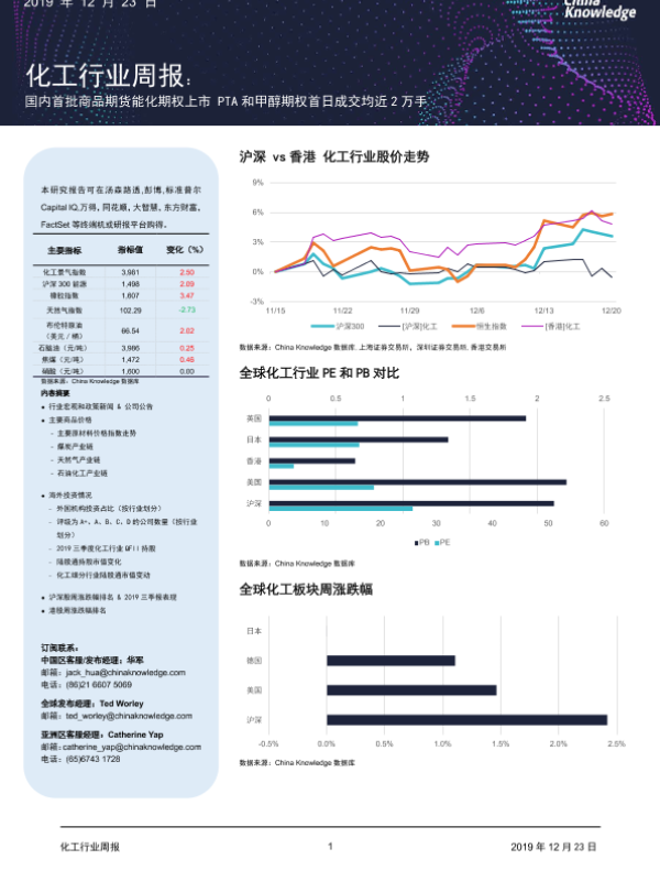 【China Knowledge】【20191223】化工行业周报:国内首批商品期货能化期权上市 PTA和甲醇期权首日成交均近2万手-28页 行业研究