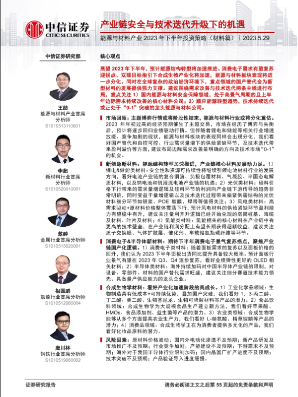 【中信证券】【20230529】能源与材料产业2023年下半年投资策略(材料篇):产业链安全与技术迭代升级下的机遇-55页 行业研究