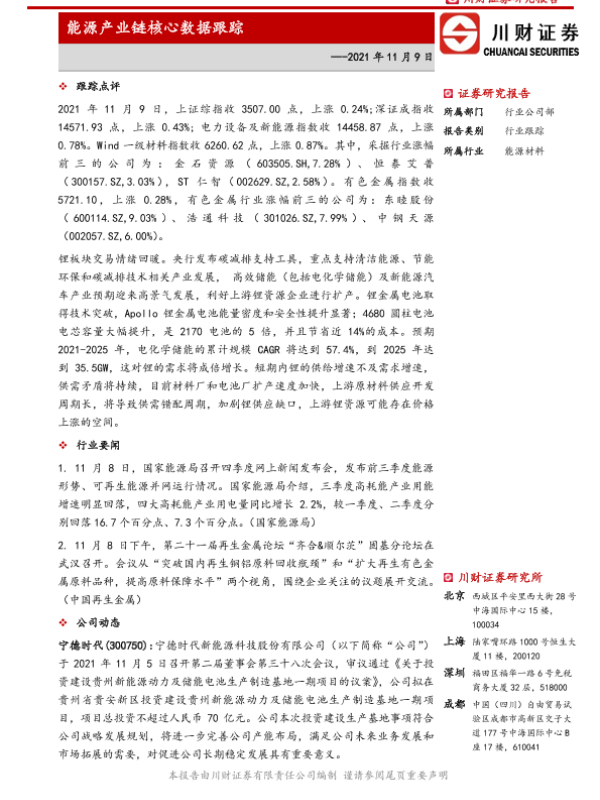 【川财证券】【20211109】能源产业链核心数据跟踪-5页 证券期货研究报告