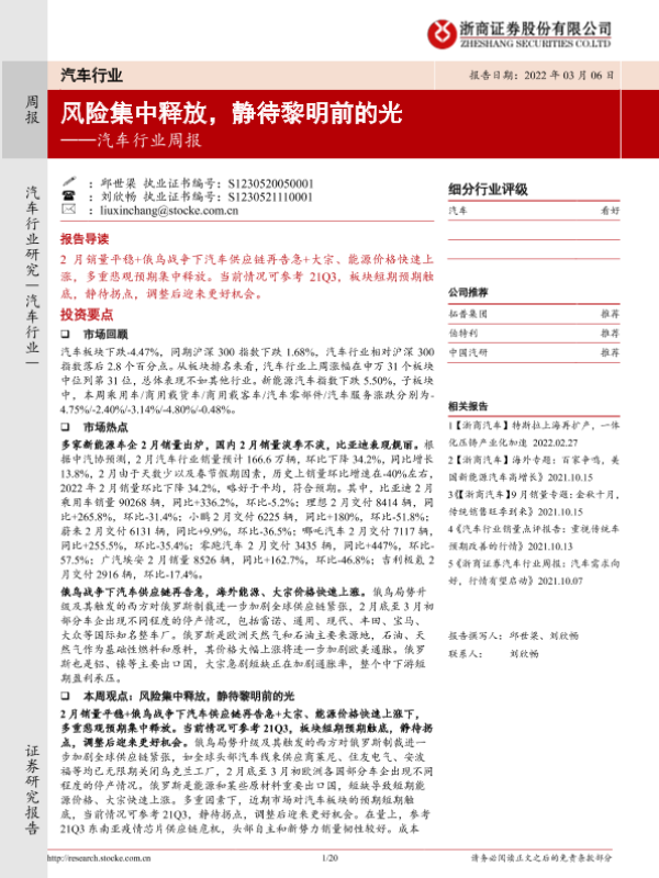 【浙商证券】【20220306】汽车行业周报:风险集中释放,静待黎明前的光-20页 行业研究