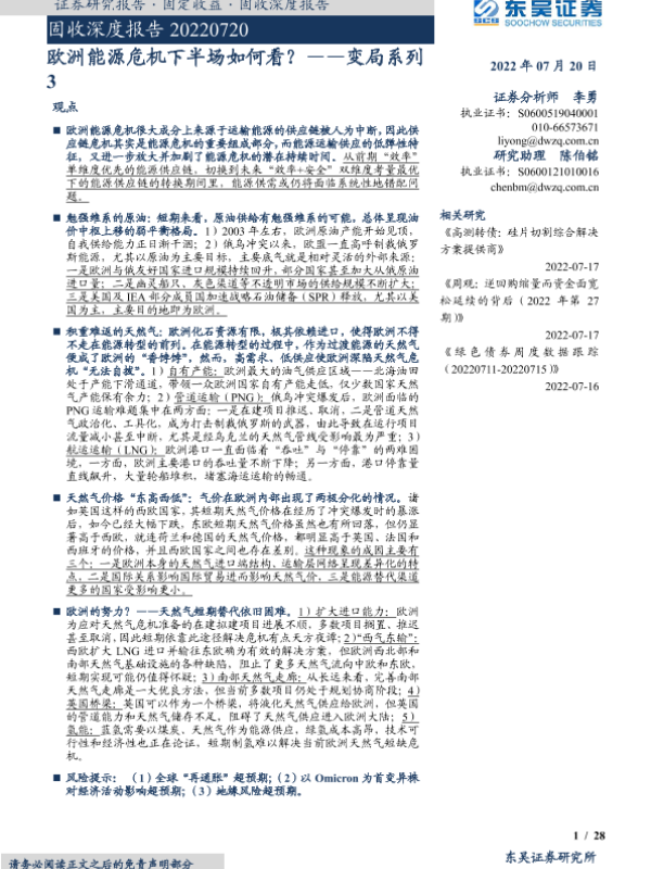 【东吴证券】【20220720】变局系列3:欧洲能源危机下半场如何看?-28页 行业研究