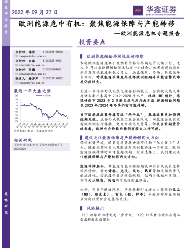 【华鑫证券】【20220927】欧洲能源危中有机:聚焦能源保障与产能转移-23页 行业研究