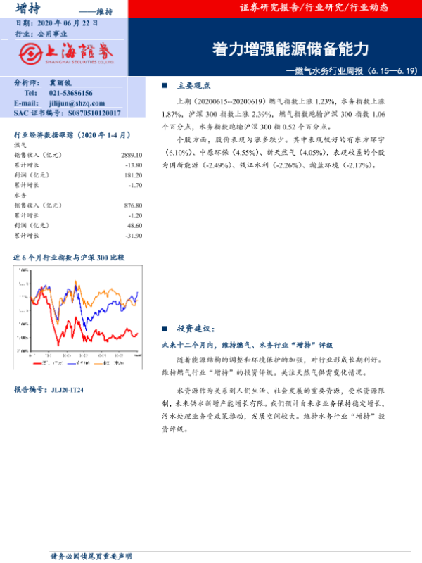 【上海证券】【20200622】燃气水务行业周报:着力增强能源储备能力-6页 行业研究