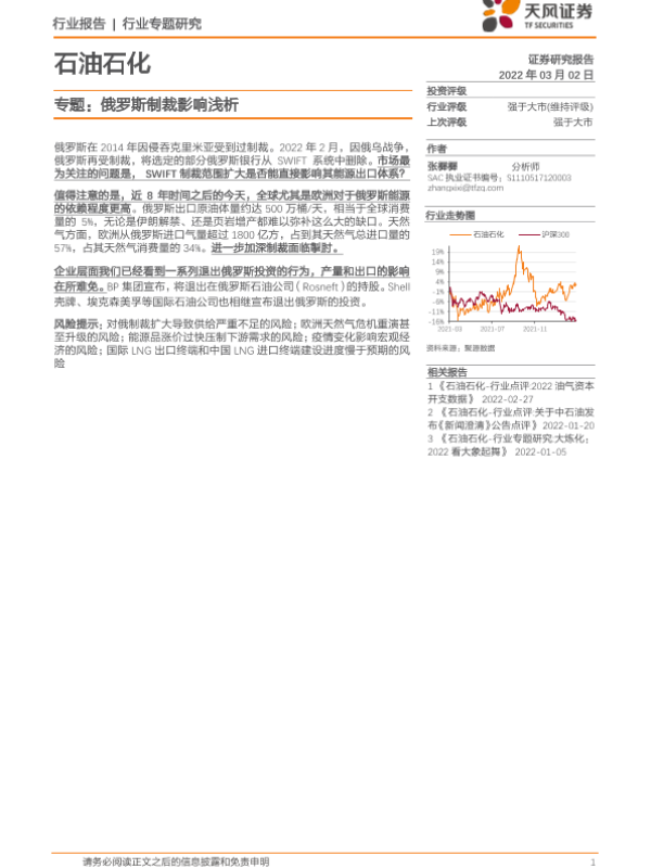 【天风证券】【20220302】石油石化专题:俄罗斯制裁影响浅析-9页 行业研究