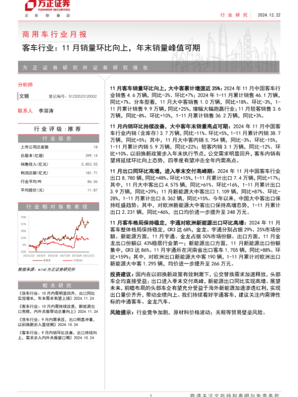 【方正证券】【20241222】商用车行业月报-客车行业:11月销量环比向上,年末销量峰值可期-14页 行业研究