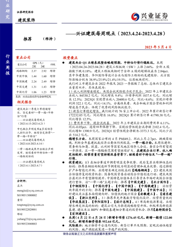 【兴业证券】【20230504】兴证建筑每周观点-48页 行业研究
