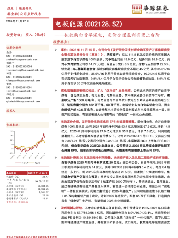 【华源证券】【202511】拟收购白音华煤电,定价合理盈利有望上台阶-4页 证券期货研究报告