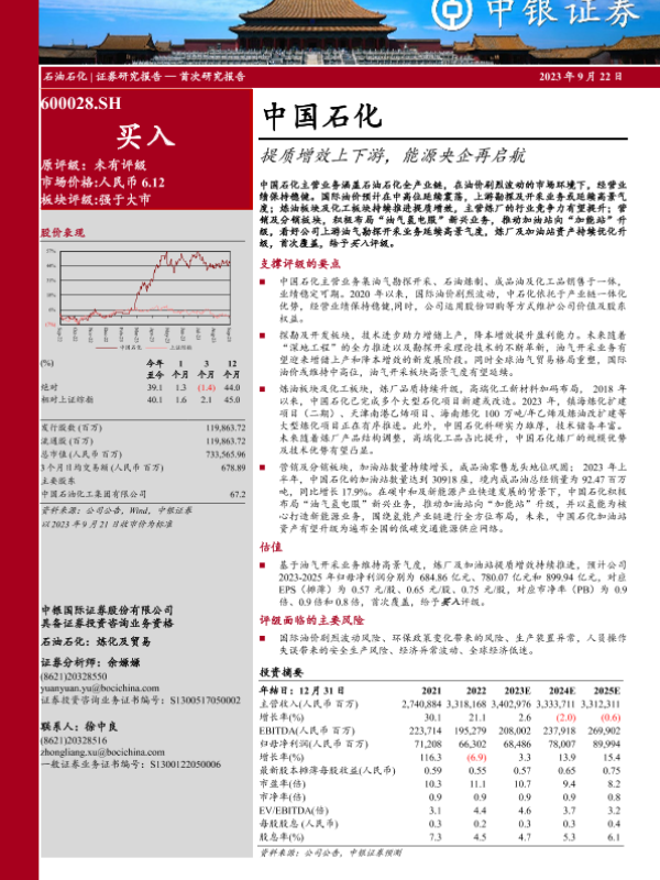 【中银证券】【20230922】中国石化-600028.SH-提质增效上下游,能源央企再启航-37页 行业研究