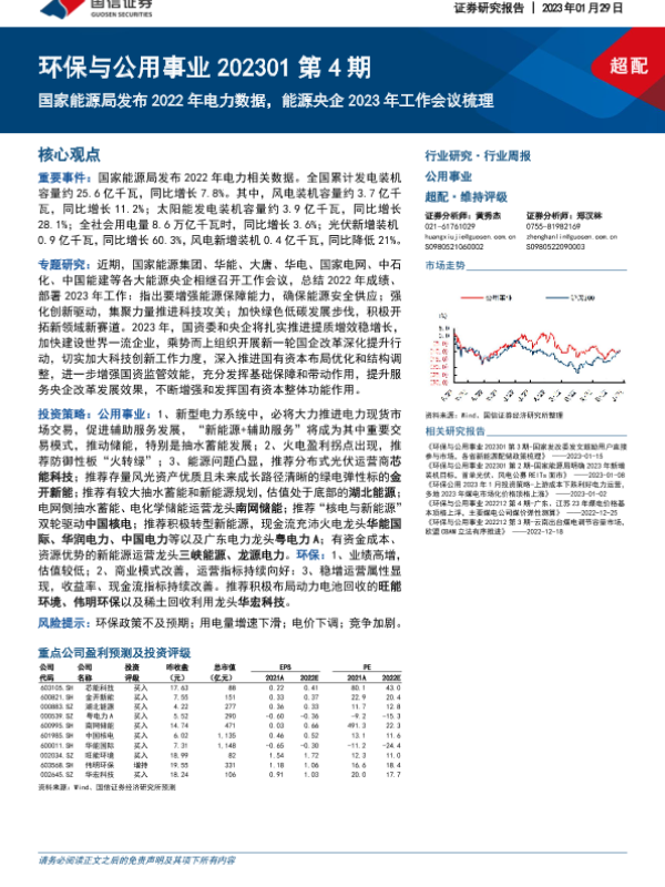 【国信证券】【20230129】环保与公用事业202301第4期:国家能源局发布2022年电力数据,能源央企2023年工作会议梳理-27页 行业研究