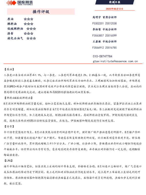 【国投期货】【20230812】能源日报-2页 证券期货研究报告