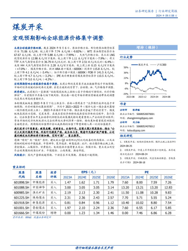 【国盛证券】【20240908】煤炭开采行业研究简报:宏观预期影响全球能源价格集中调整-11页 行业研究