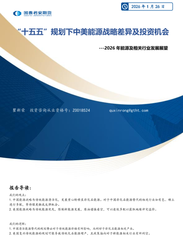 【国泰君安期货】【202601】“十五五”规划下中美能源战略差异及投资机会---2026年能源及相关行业发展展望-8页 证券期货研究报告