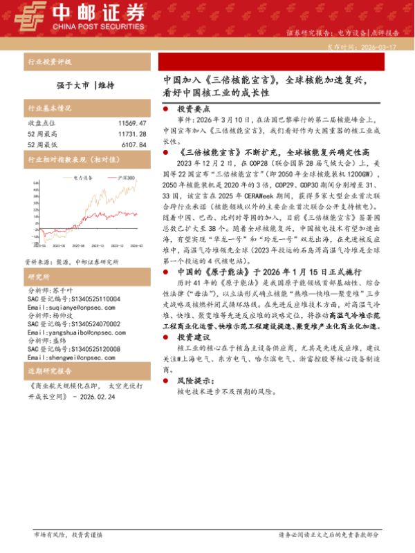 【中邮证券】【202603】中国加入《三倍核能宣言》,全球核能加速复兴,看好中国核工业的成长性-3页 证券期货研究报告