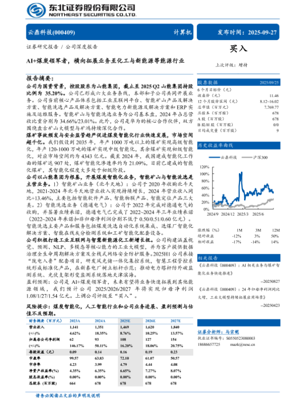 【东北证券】【202509】AI+煤炭领军者,横向拓展业务至化工与新能源等能源行业-34页 证券期货研究报告