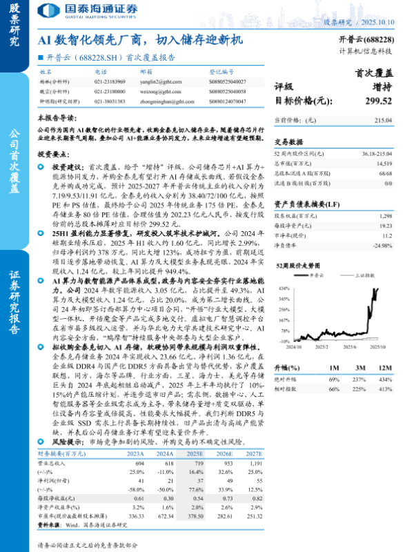【国泰海通证券】【202510】AI数智化领先厂商,切入储存迎新机-23页 证券期货研究报告
