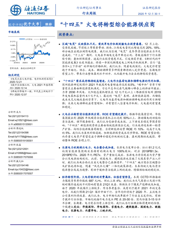 【海通证券】【20201230】“十四五”火电将转型综合能源供应商-2页 行业研究