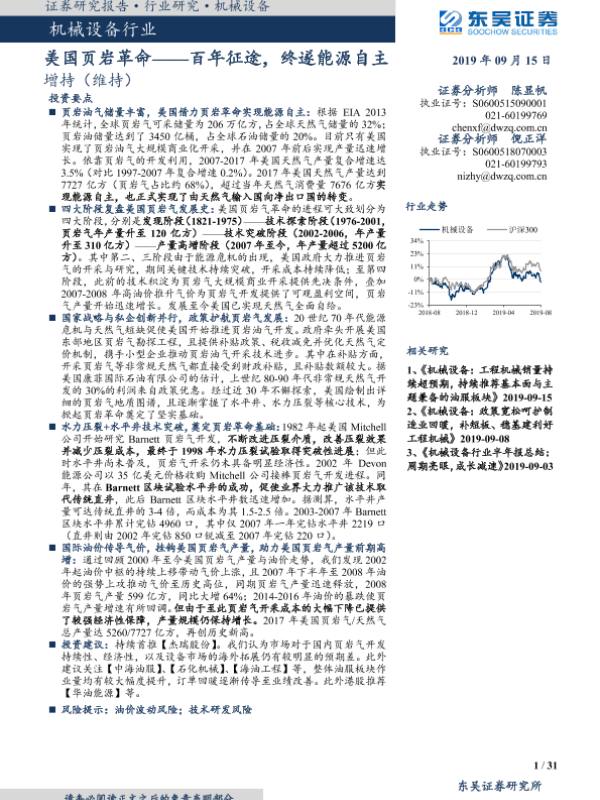 【东吴证券】【20190919】美国页岩革命——百年征途,终遂能源自主-31页 行业研究