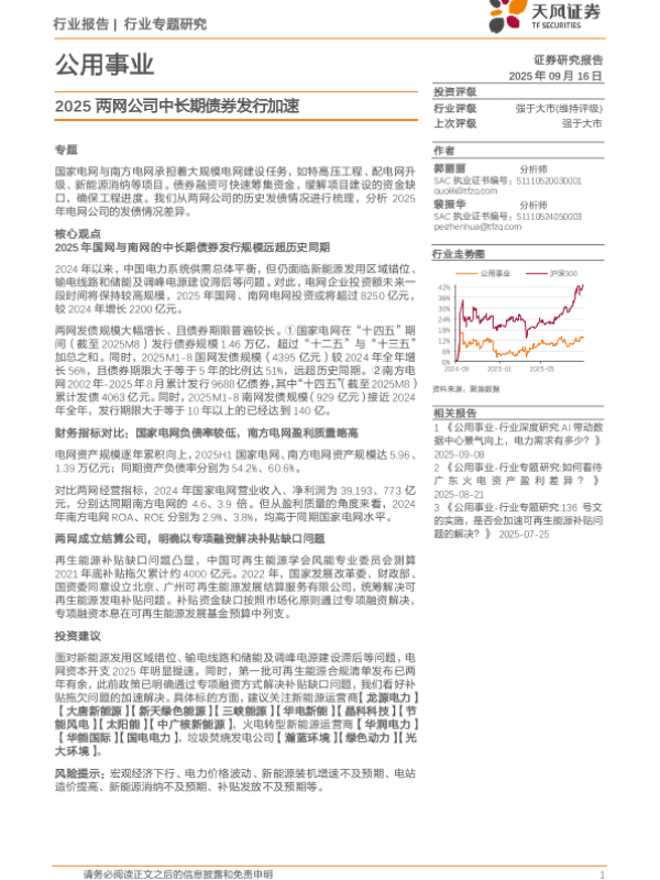 【天风证券】【202509】公用事业行业专题研究:2025两网公司中长期债券发行加速-10页 证券期货研究报告