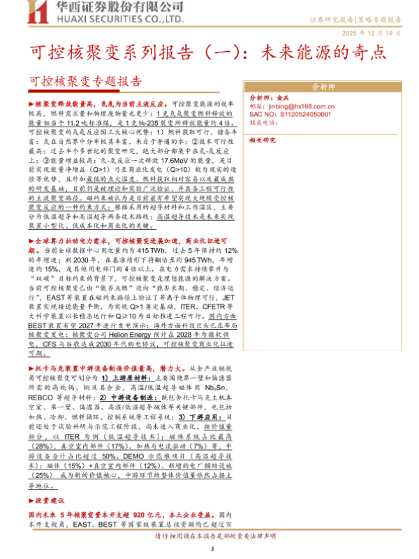 【华西证券】【202512】可控核聚变系列报告(一):未来能源的奇点-29页 证券期货研究报告