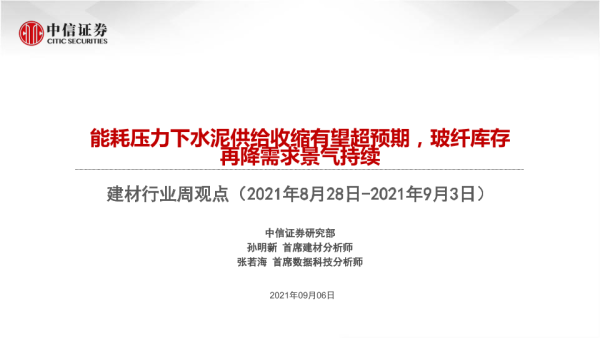 【中信证券】【20210906】建材行业周观点:能耗压力下水泥供给收缩有望超预期,玻纤库存再降需求景气持续-51页 行业研究