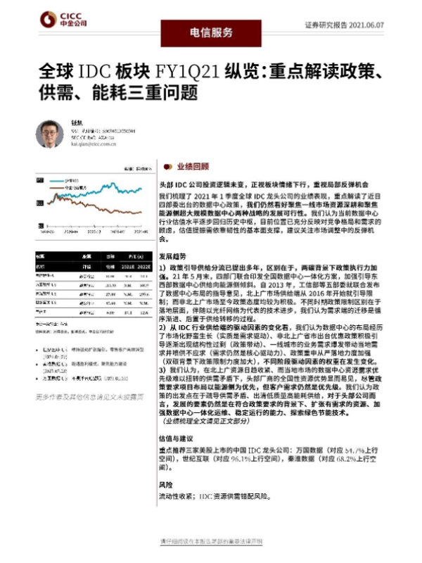 【中金公司】【20210607】全球IDC板块FY1Q21纵览:重点解读政策、供需、能耗三重问题-13页 行业研究
