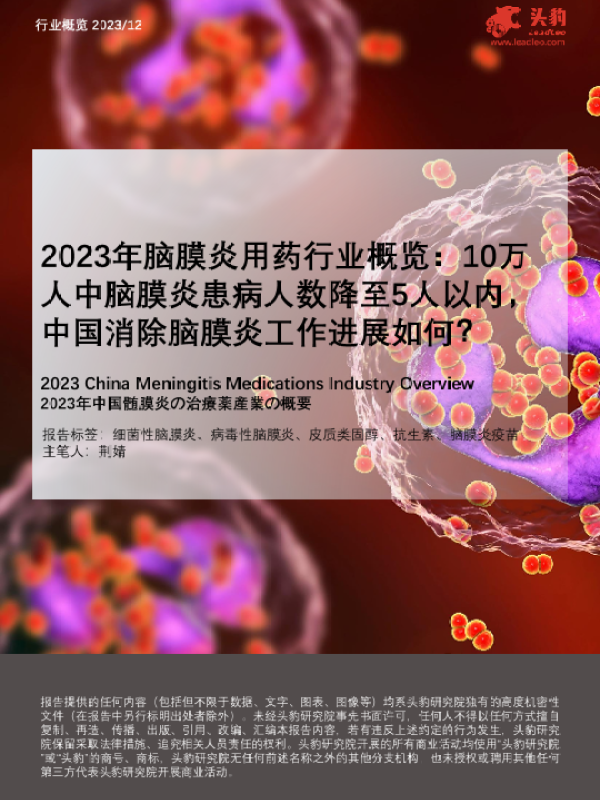 【头豹研究院】【202312】2023年脑膜炎用药行业概览:10万人中脑膜炎患病人数降至5人以内,中国消除脑膜炎工作进展如何?-26页 行业研究