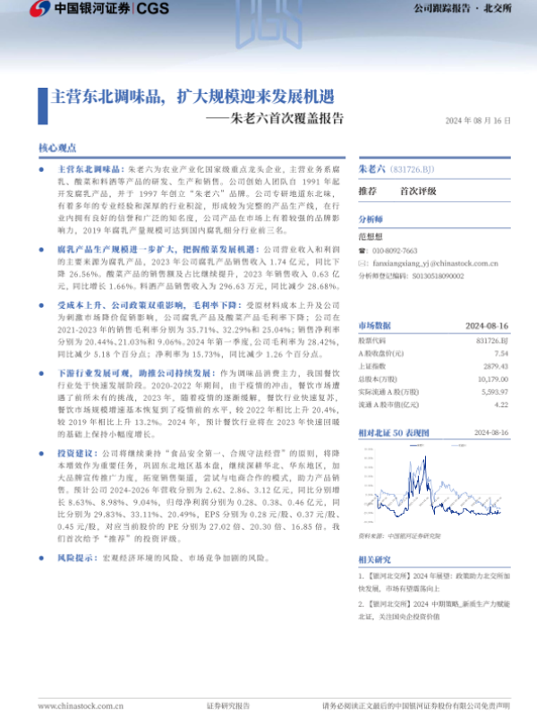 【银河证券】【20240816】朱老六首次覆盖报告:主营东北调味品,扩大规模迎来发展机遇-14页 公司研究