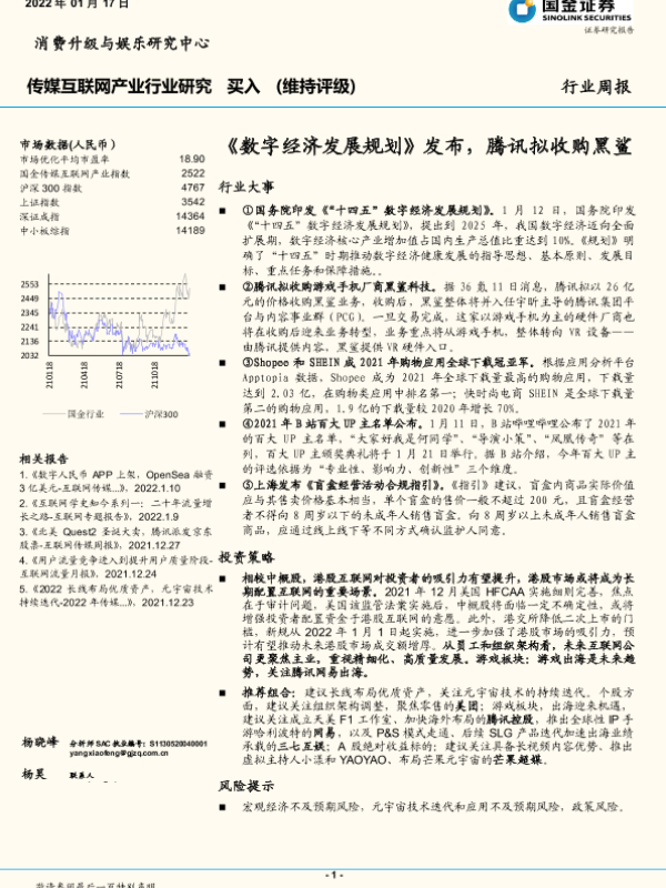【国金证券】【20220117】数字经济发展规划发布,腾讯拟收购黑鲨-15页 行业研究