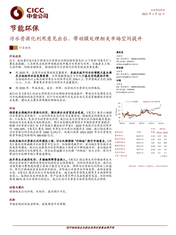 【中金公司】【20210112】污水资源化利用意见出台,带动膜处理相关市场空间提升-5页 行业研究