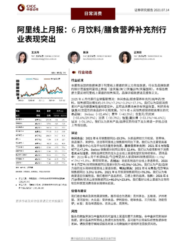 【中金公司】【20210714】20210714-中金公司-日常消费:阿里线上月报:6月饮料/膳食营养补充剂行业表现突出-22页 行业研究