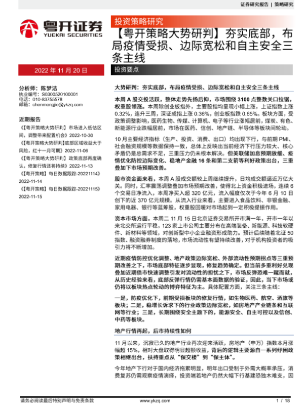 【粤开证券】【20221120】粤开策略大势研判:夯实底部,布局疫情受损、边际宽松和自主安全三条主线-18页 行业研究