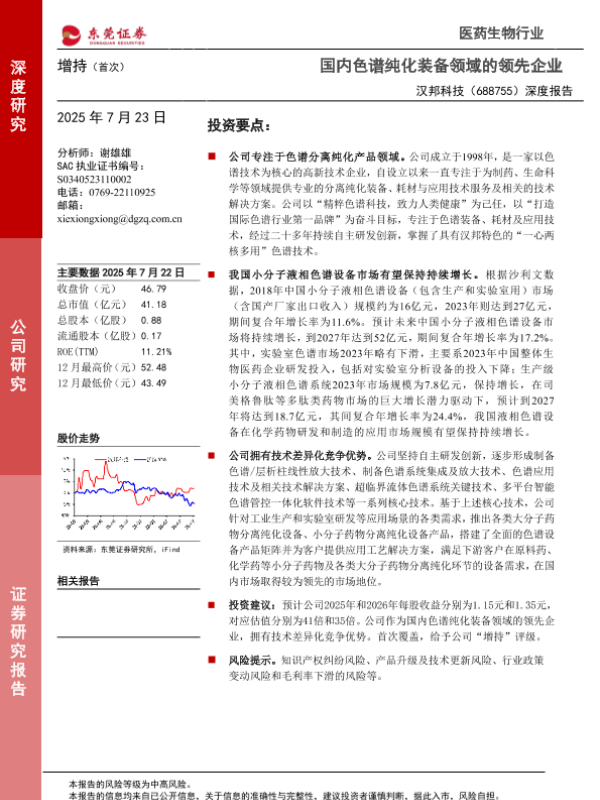 【东莞证券】【20250723】汉邦科技-688755.SH-深度报告:国内色谱纯化装备领域的领先企业-17页 证券期货研究报告