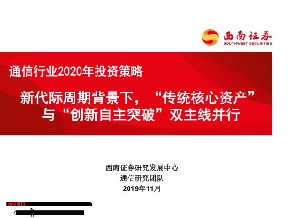 【西南证券】【20191127】通信行业2020年投资策略:新代际周期背景下,“传统核心资产”与“创新自主突破”双主线并行-42页 行业研究