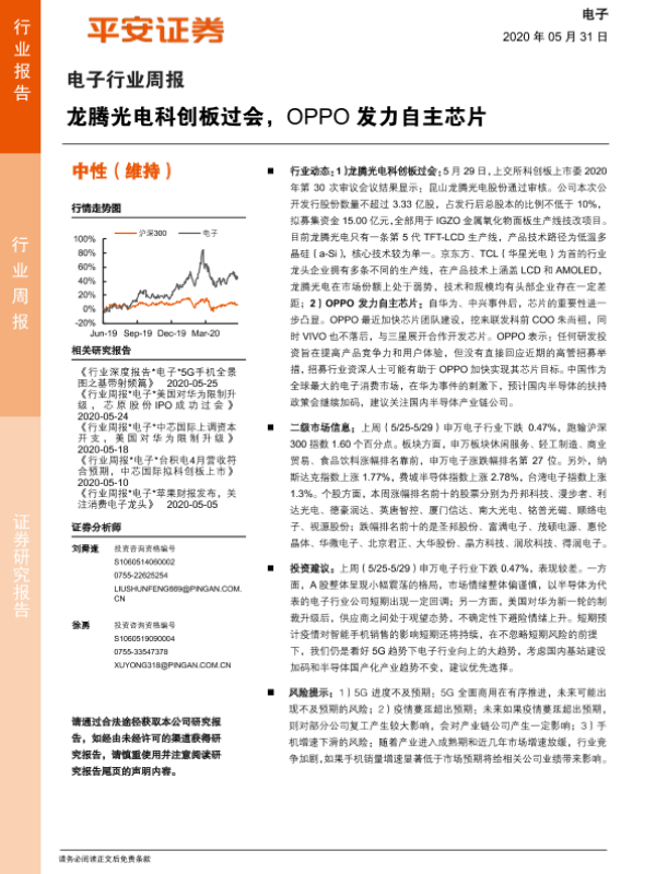 【平安证券】【20200531】20200531-平安证券-电子行业周报:龙腾光电科创板过会,OPPO发力自主芯片-5页 行业研究