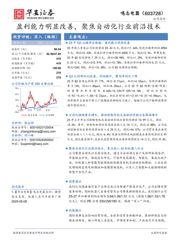【华安证券】【202511】盈利能力明显改善,聚焦自动化行业前沿技术-4页 证券期货研究报告