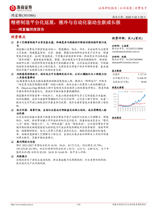 【浙商证券】【202602】精密制造平台化延展,液冷与自动化驱动全新成长极——鸿富瀚深度报告-26页 证券期货研究报告