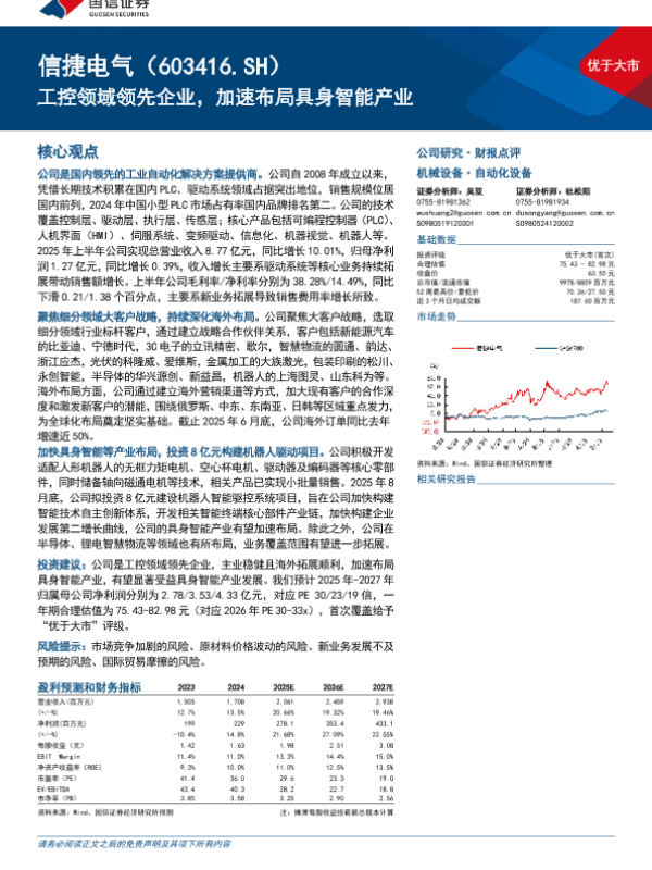 【国信证券】【202509】优于大市 信捷电气(603416.SH)工控领域领先企业,加速布局具身智能产业-19页 证券期货研究报告