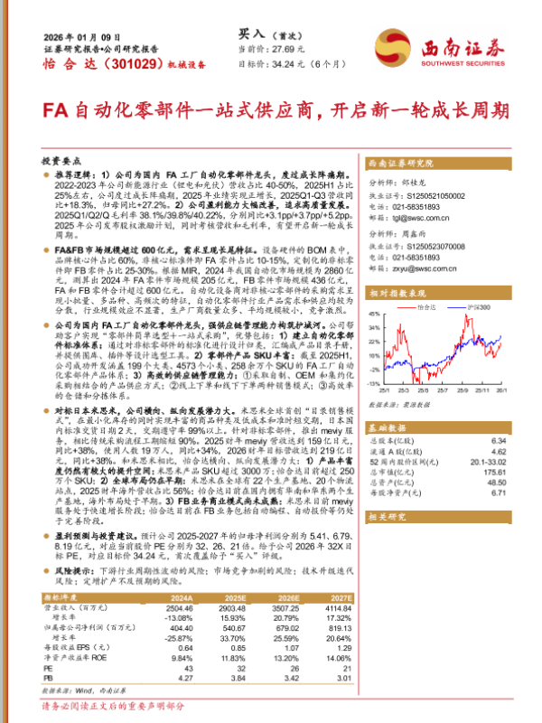 【西南证券】【202601】FA自动化零部件一站式供应商,开启新一轮成长周期-25页 证券期货研究报告
