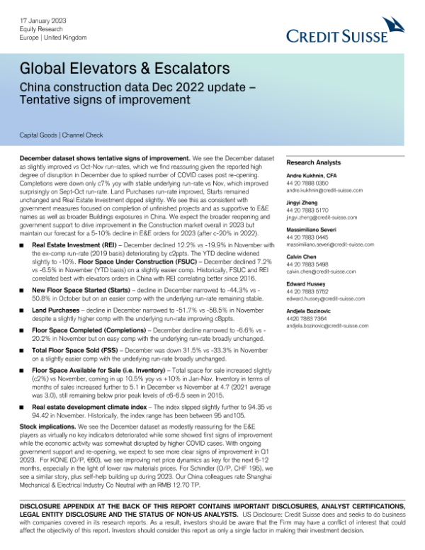 【Credit Suisse】【20230117】Global Elevators & Escalators-9页 行业研究