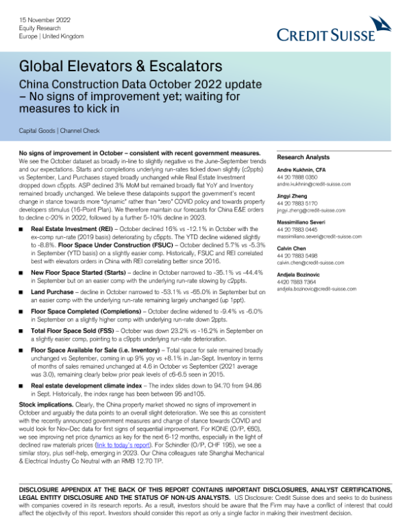 【Credit Suisse】【20221001】Global Elevators & Escalators-9页 行业研究