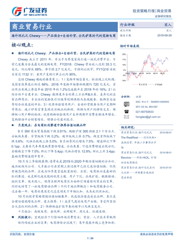 【广发证券】【20190929】海外巡礼之Chewy——产品俱全+自动补货,全民铲屎时代的宠物电商-24页 行业研究