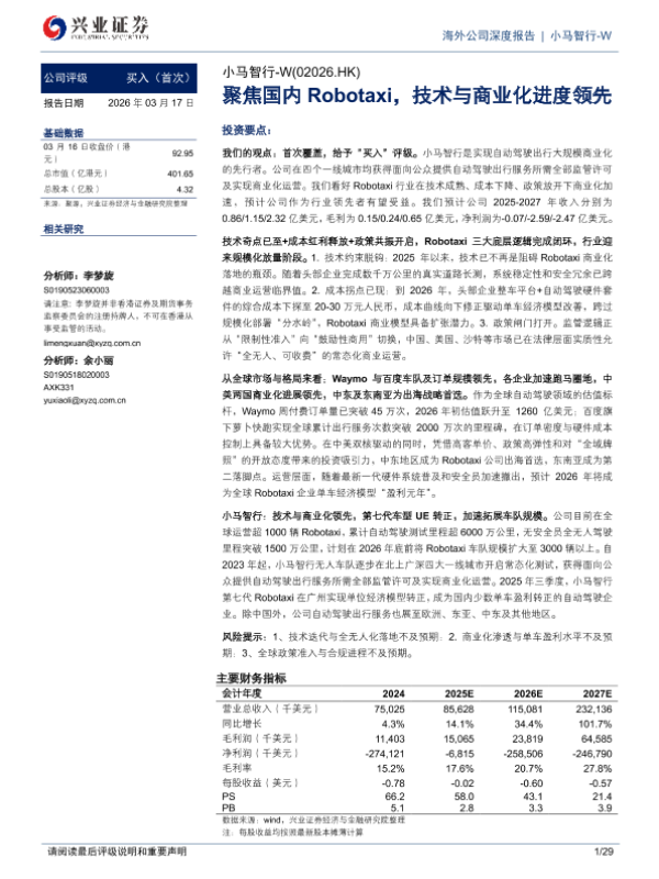 【兴业证券】【202603】聚焦国内Robotaxi技术与商业化进度领先-29页 公司研究