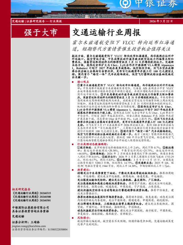 【中银证券】【202603】交通运输行业周报-26页 证券期货研究报告