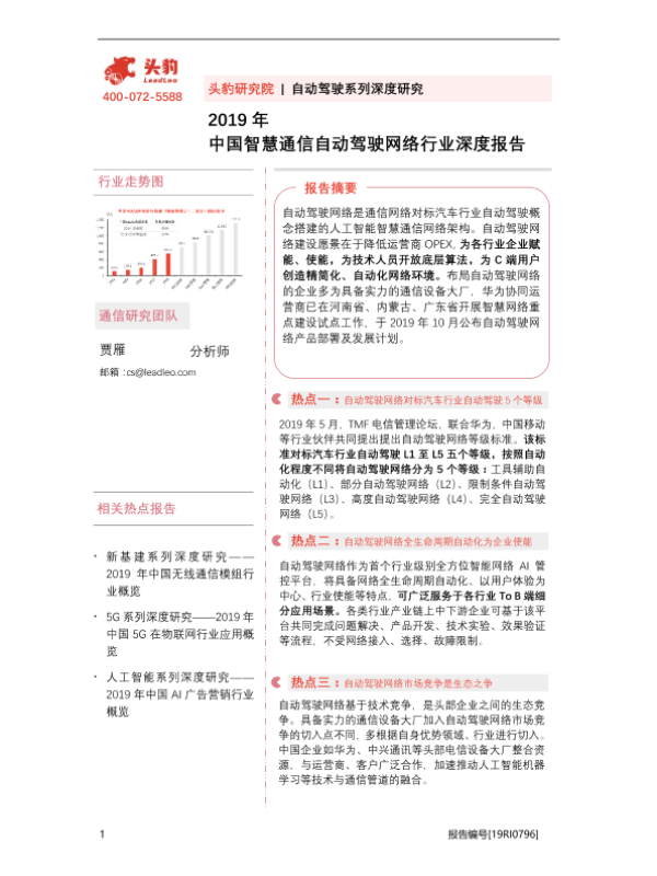 【头豹研究院】【2019】2019年中国智慧通信自动驾驶网络行业深度报告-33页 行业研究