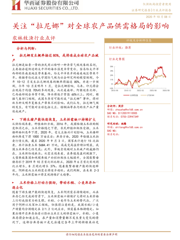 【华西证券】【20201008】关注“拉尼娜”对全球农产品供需格局的影响-4页 行业研究