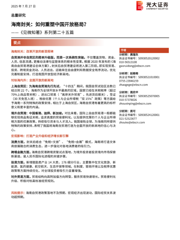 【光大证券】【202507】海南封关:如何重塑中国开放格局?-14页 证券期货研究报告