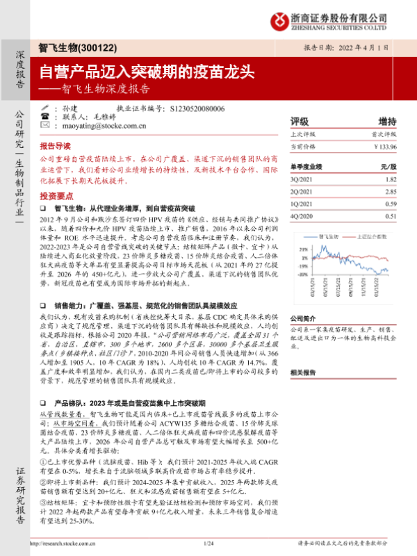 【浙商证券】【20220401】智飞生物深度报告:自营产品迈入突破期的疫苗龙头-24页 行业研究