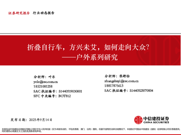 【中信建投证券】【202409】折叠自行车,方兴未艾,如何走向大众?——户外系列研究-38页 证券期货研究报告