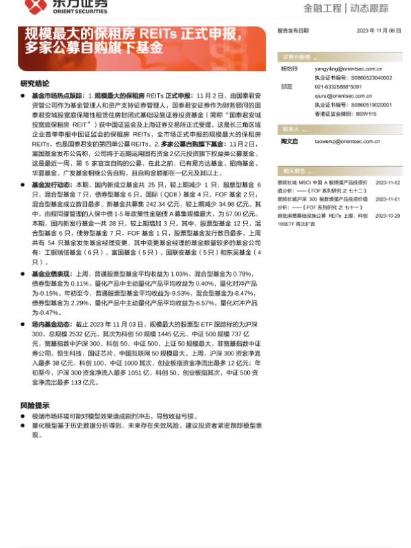 【东方证券】【20231106】规模最大的保租房REITs正式申报,多家公募自购旗下基金-15页 行业研究