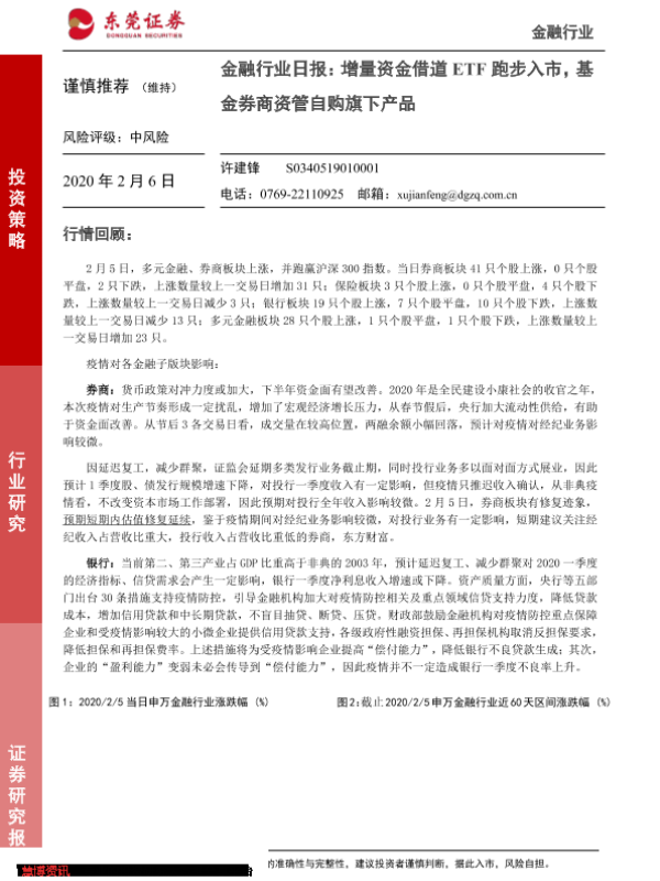 【东莞证券】【20200206】金融行业日报:增量资金借道ETF跑步入市,基金券商资管自购旗下产品-5页 行业研究